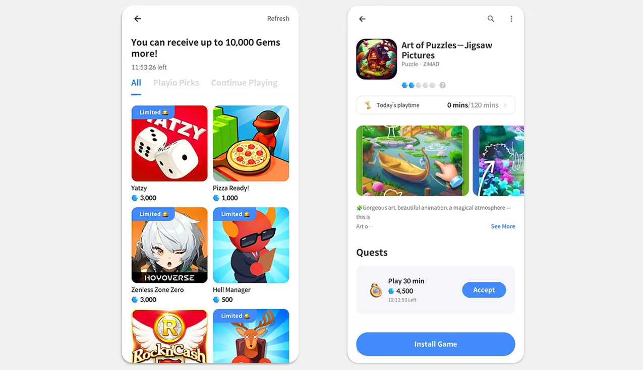 Playio’s unique action-based reward system helps game companies to acquire new game users