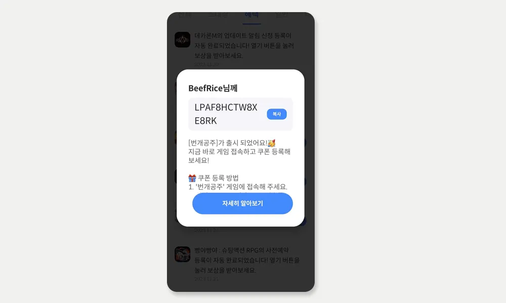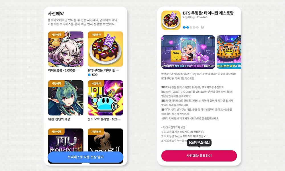 Playio’s pre-registration products are divided into two types: Direct Participation, where users can actively join to achieve high conversion rates, and Automatic Participation, which helps secure a large number of users in a short time. These options allow for flexible use based on pre-registration campaign KPIs.