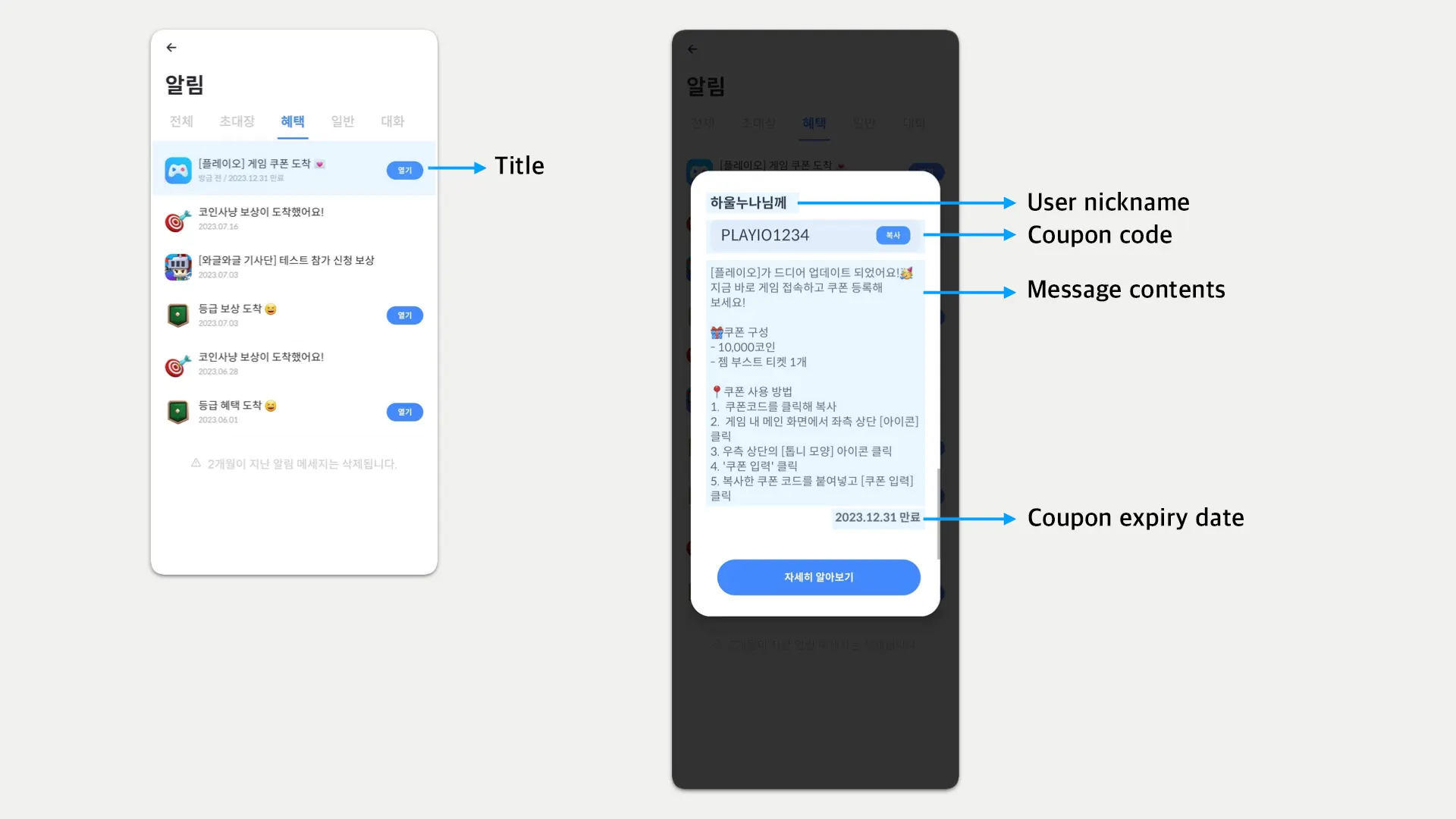 This product allows you to send game coupons through Playio’s notifications. Only public coupons are possible, and you can add an icon image.
